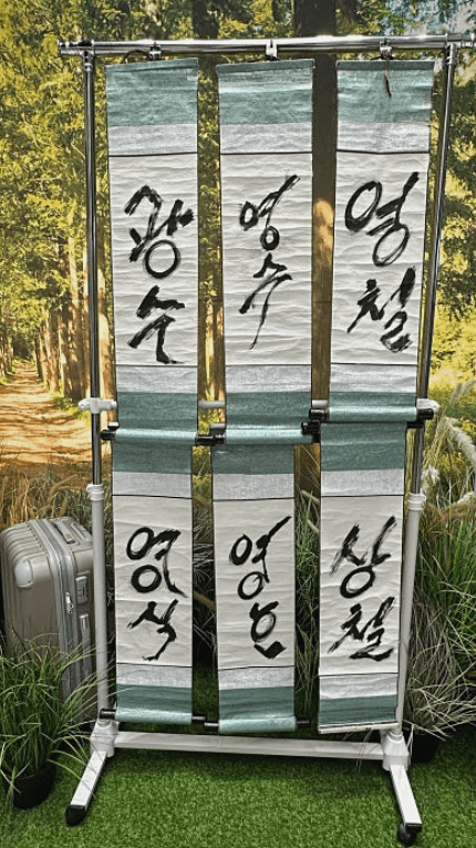 외부 기둥에 크게 설치된 출연자들의 이름 족자는 방문객들이 기억에 남는 사진을 찍을 수 있는 인기 장소입니다.