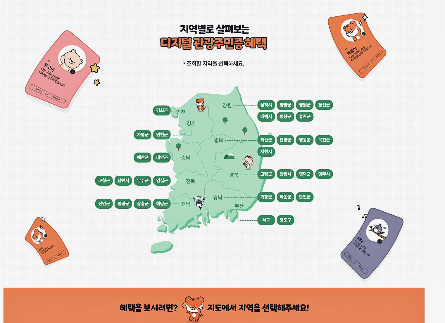 디지털관광주민증은 전국의 다양한 지역에서 사용 가능합니다.