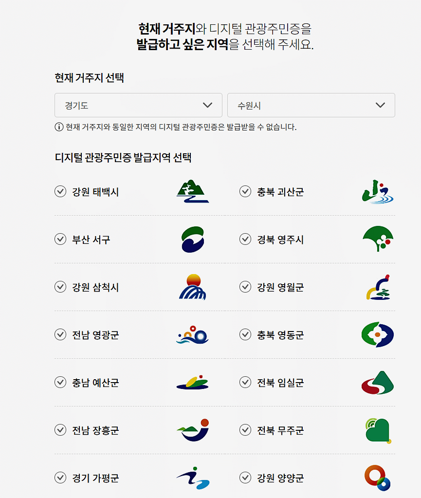 디지털관광주민증은 지역마다 제공되는 혜택이 다릅니다.