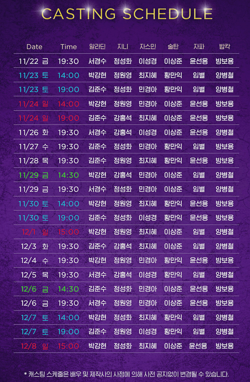 특별 출연 : 종종 유명 배우들이 특별 출연하거나, 더블 캐스팅으로 다른 배우들과 역할을 번갈아 가며 소화하기도 합니다.