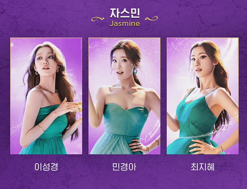 아그라바 왕국의 공주로, 자신의 삶을 주체적으로 살아가고자 하는 강인한 성격의 소유자입니다. 알라딘과의 사랑 이야기는 이 뮤지컬의 중심 축입니다. 자스민 역은 아름다움과 강인함을 동시에 표현할 수 있는 배우가 캐스팅됩니다.