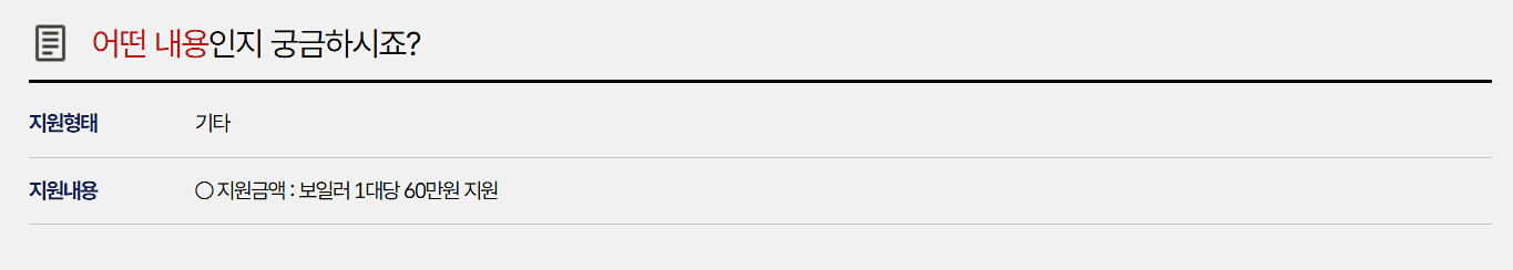 정부는 저소득층, 취약계층, 다자녀가구, 사회복지시설 등을 대상으로 보일러 1대당 60만 원을 지원합니다.