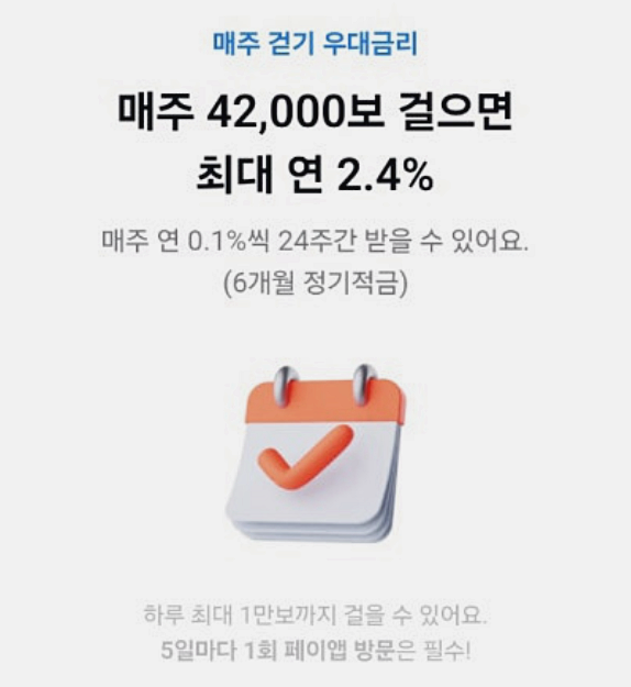 - 우대 조건: 매주 4만2000보 이상 걸으면 우대 금리가 추가 적용됩니다.