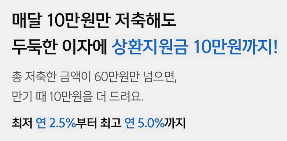 학자금 대출 상환을 돕는 상품으로, 상환지원금 10만 원과 우대금리를 동시에 누릴 수 있는 장점이 있습니다. 대학생이나 청년층에게 매우 유리한 상품입니다.